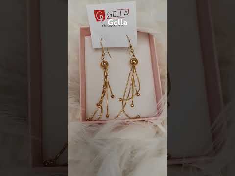 Dámske náušnice visiace s guličkami z chirurgickej ocele, zlaté - video vo fotkách