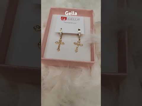 Dámske náušnice z chirurgickej ocele kríž, zlaté so zirkónmi - video vo fotkách