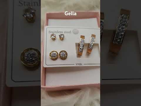 Dámske náušnice z chirurgickej ocele zlaté, 3 kusy - 1x kruhy so zirkónmi, 1x okrúhle so zirkónmi, 1x s vystupujúcimi zirkónmi - video vo fotkách