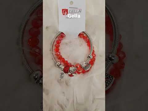 Dámsky náramok na ruku s príveskami, červený - video vo fotkách