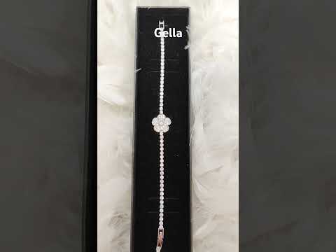 Náramok na ruku dámsky strieborný, kvet so zirkónmi - video vo fotkách