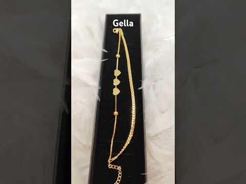 Náramok na ruku dámsky zlatý, dvojitý so srdiečkami - video vo fotkách