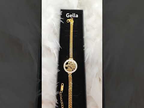 Náramok na ruku dámsky zlatý, s príveskom so stromom šťastia - video vo fotkách