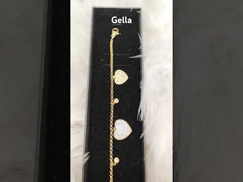 Náramok na ruku dámsky zlatý s tromi srdiečkami a zirkónmi - video vo fotkách