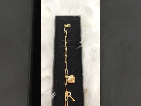Náramok na ruku dámsky zlatý so srdiečkom a klúčikom - video vo fotkách