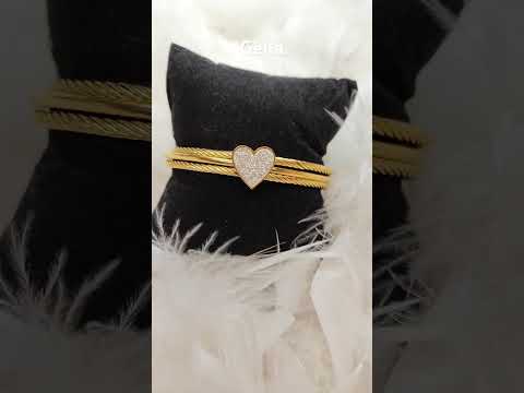 Náramok na ruku dámsky zlatý so srdiečkom so zirkónmi, prazleta - video vo fotkách